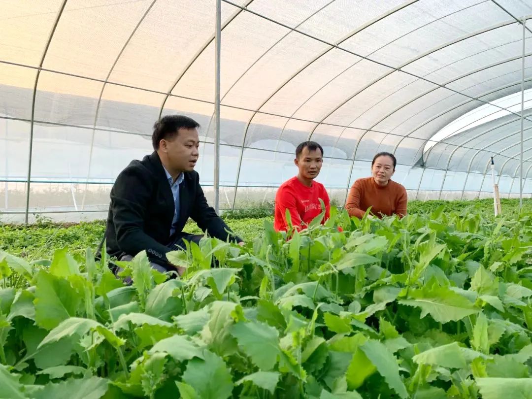 黃重運(yùn)到練江村“藥食同源”養(yǎng)生蔬菜種植基地查看菜苗長(zhǎng)勢(shì)。受訪者供圖