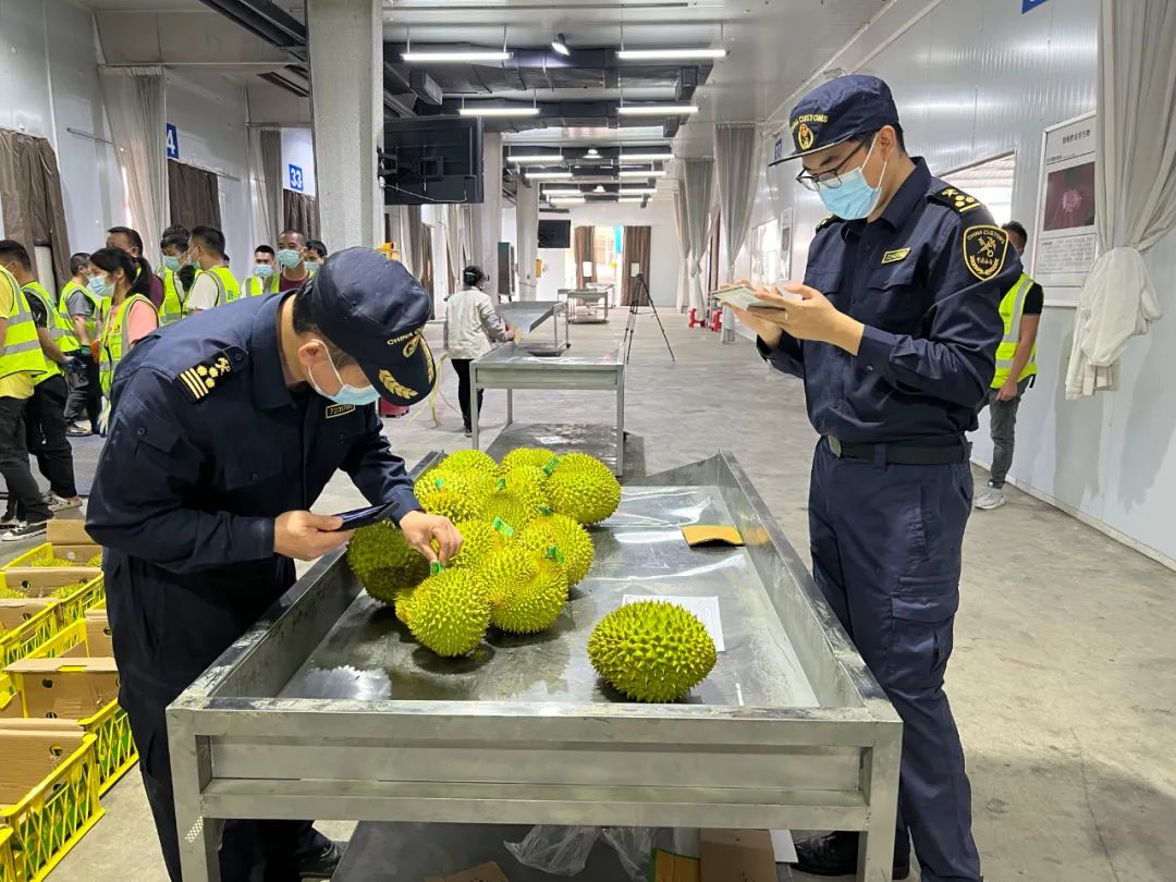 友誼關(guān)海關(guān)關(guān)員正在對進(jìn)口榴蓮進(jìn)行查驗。 梁家玫 攝